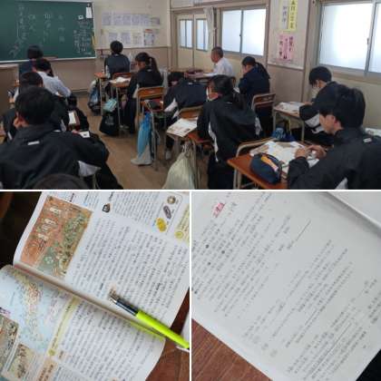 2年生の社会の授業の様子です。歴史の授業で「江戸時代」について学習しています。江戸時代中期の五街道について先生より説明がありました。