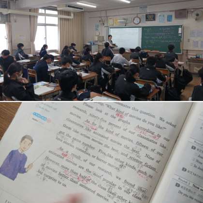 今日の2年生の英語の授業は「Read and Think」の学習をしています。長文の発音練習や和訳から内容の確認が行われていました。