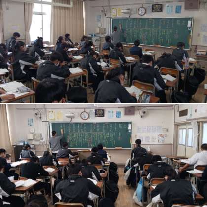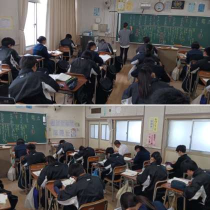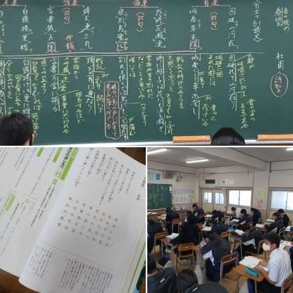 2年生の国語の授業の様子です。「漢文」の学習です。教科書に載っている春望の意味を確認しています。漢文はなかなか慣れない文章ですが、多く触れ知識にしていきましょう。