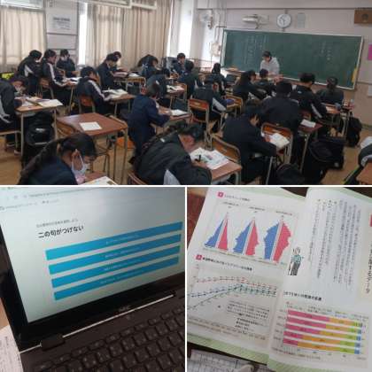 2年生の国語の授業は今までの振り返りを行っています。来週行われる期末テストに向けて復習をしています。週末、家でも復習に取り組みましょう。