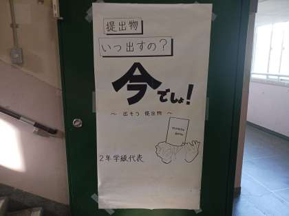 各学年のフロアには、各種委員会が伝えたい事柄を掲示しています。前回の各種委員会を受けて、掲示物が更新されました。2年生の学年フロアの掲示物です。