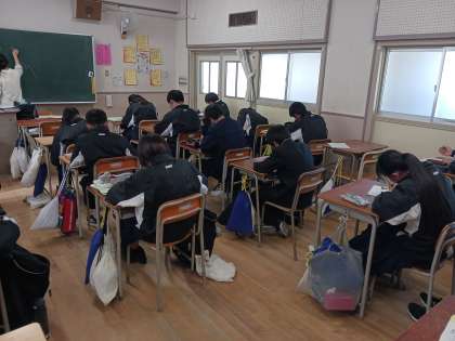 2年生の英語の授業の様子です。形容詞の変化表の小テストです。この土日にしっかり学習をしていたと思います。