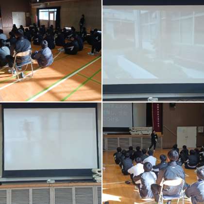 2年生は、明日「車椅子体験」を行います。そこで6時間目では「車椅子体験」の事前指導を行いました。車椅子の押し方や工夫について説明を聞きました。明日は体育館や北館校舎で実際に車椅子を使用しますので、コースの確認も行いました。またユニバーサルデザインやバリアフリーのことについて学習しました。