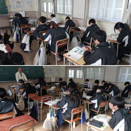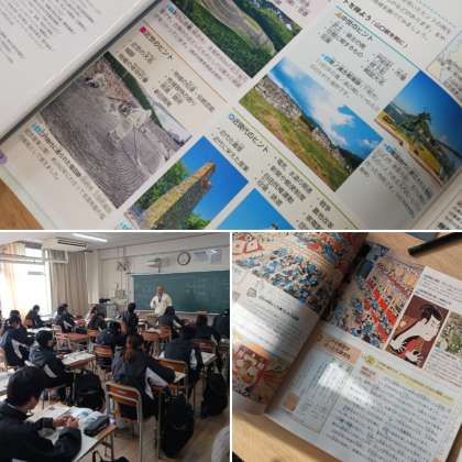 2年生の社会の授業の様子です。歴史分野で、19世紀初期の化政文化について、蘭学などが日本に伝来した説明が先生からありました。
