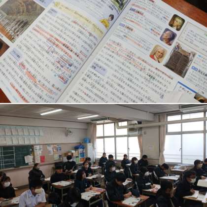 国語の授業では「文章検定」の練習問題が行われていました。実際に各級の文章検定の問題を解いて知識に繋げています。分からないところは個別に先生に質問している様子もありました。