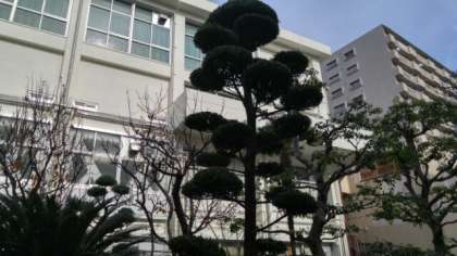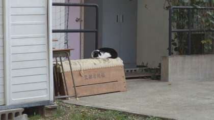 そして冬の中庭・・・、寒さの中、学校に居座っているネコ
