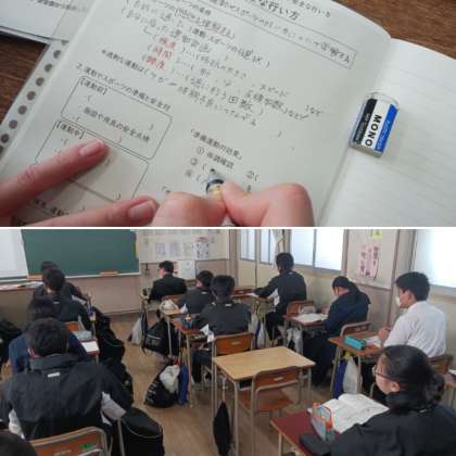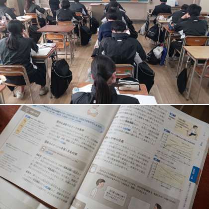 2年生の保健の授業では「運動やスポーツの安全な行い方」について学習しています。「スポーツを行う前の安全点検や、スポーツ活動時に水分を取ることが必須である」と担当の先生から説明がありました。水分を取る際、塩分も必要であるとことでした。普段の部活動でも意識をして取り組みましょう。