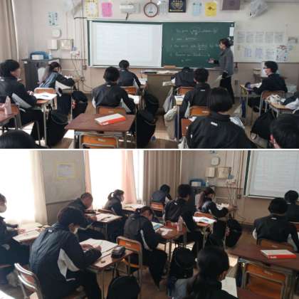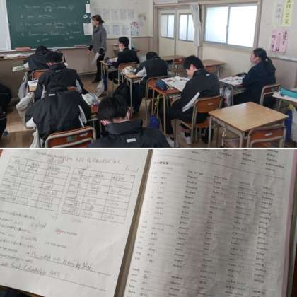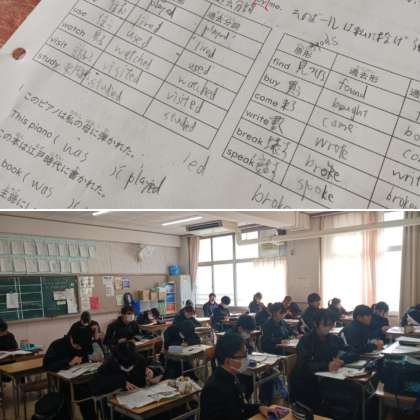 2年生の英語の授業は「受動態」について学習しています。新たに、過去分詞について先生から説明がありました。受動態は難しいので、理解に繋がりましたか。文法表現が新たに1つ増えましたね。今日学習した内容は週末に時間があると思いますので、再度復習しておきましょう。