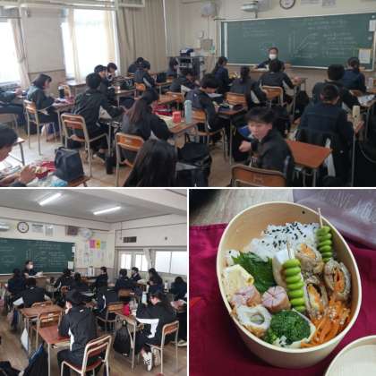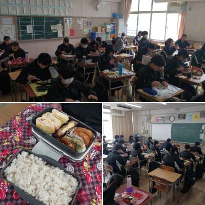 今日は新東三国小学校が1月18日(土)イングリッシュデイの代休のため給食がありません。今日はお弁当を持参しています。朝早くから準備をして頂いた保護者の方に感謝しましょう。午後からの授業も集中して取り組みましょう。
