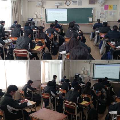 2年生の保健の授業の様子です。癌という病気について、またその予防について先生より説明がありました。体調管理を徹底し健康でいることはとても大切です。今日の授業での説明をお子様から聞いてもらい、ご家庭でもぜひ話し合ってみてしてください。