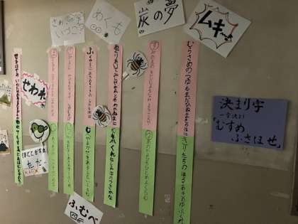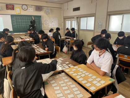 1年生は本日、5・6時間目に体育館で百人一首大会を行いました。今日に備えて、学年では掲示物を作ったり、学級で練習をして、本日に備えてきました。