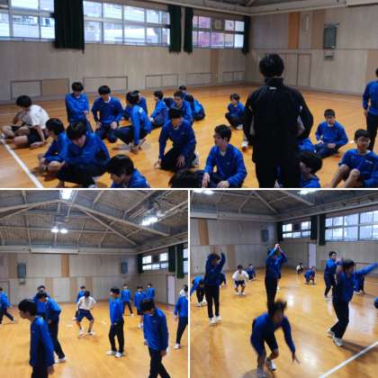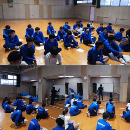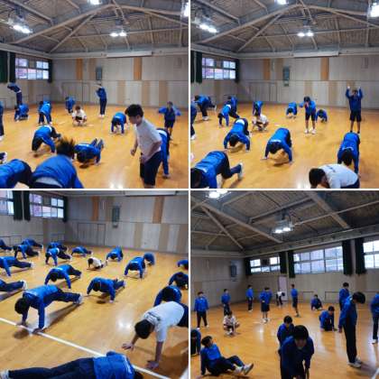 1、2年生体育の授業は格技室で行われていました。授業の最後に行われていたサーキットトレーニングの様子です。運動の動作と休憩を繰り返すサーキットトレーニングで体力の向上に励んでいます。