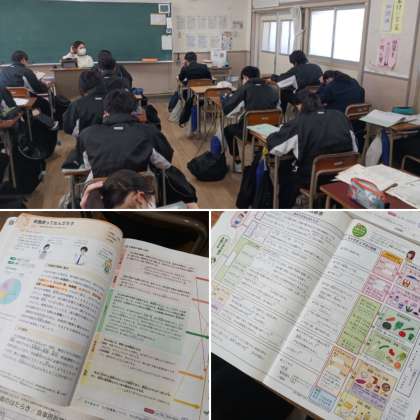 2年生の授業の様子です。国語と家庭科の様子です。テスト前の学習が中心です。