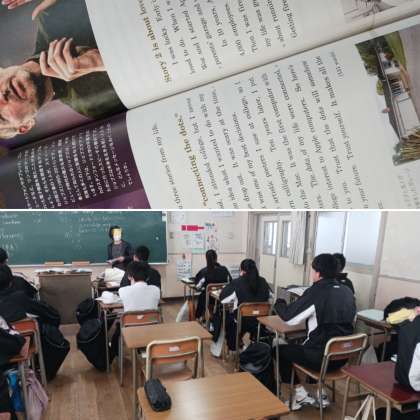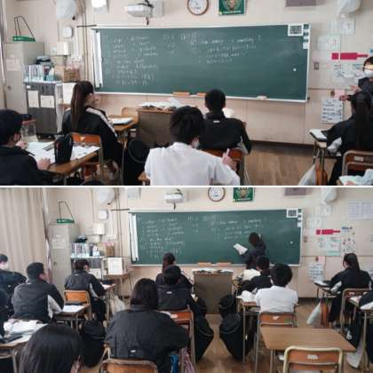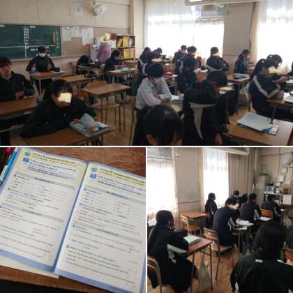 3年生の英語の授業は「Let's Read」について学習しています。スティーブ・ジョブズのスピーチについての英文を読み、その内容について確認しています。