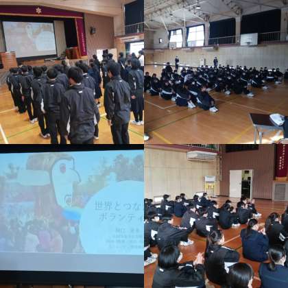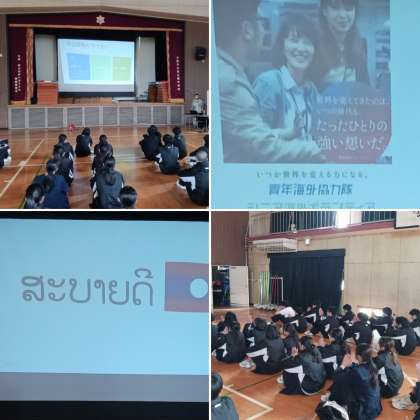 2年生は5・6時間目に体育館で、JICAより講師に来ていただきお話を頂きました。JICAとは、「独立行政法人国際協力機構」Japan International Cooperation Agencyの略称です。日本の政府開発援助(ODA)を一元的に行う実施機関として、開発途上国への国際協力を行っています。