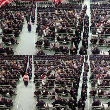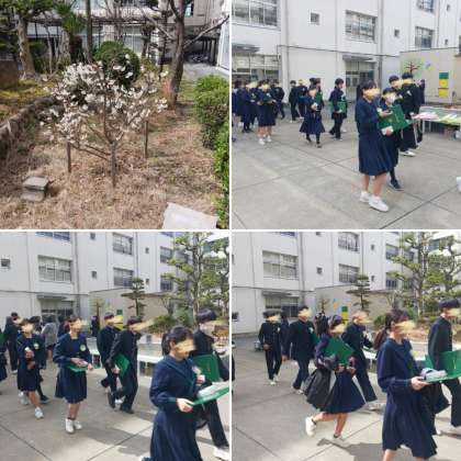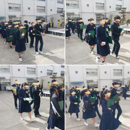 卒業生合唱「YELL (いきものがかり 作詞・作曲 水野良樹)と続きました。退場後は、格技室で最後に先生方との時間を過ごし、花道を通って巣立っていきました。