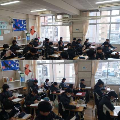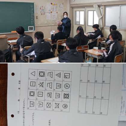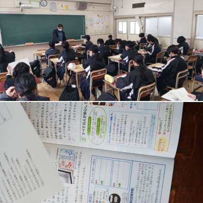 1年生の家庭科の授業の様子です。春休みの宿題が配布されました。