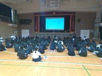 1年生の学年集会の様子です。学年として、最後の集会です。