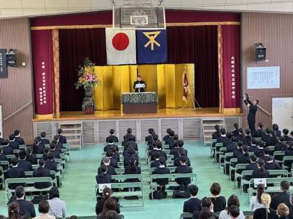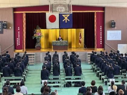 在校生代表で生徒会長から、歓迎のことばがありました。新入生代表生徒からも力強い誓いの言葉がありました。わからないことは先生方や先輩に聞いてください。これから3年間、頑張っていきましょう。