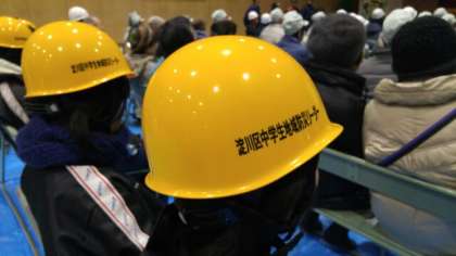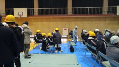 を研修し、体育館では東北大震災の生々しいビデオ鑑賞や