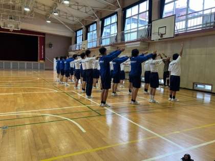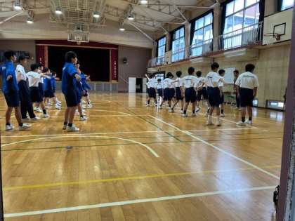 1・2年生の体育の時間の様子です。集団行動を学んでいます。今は覚えることがたくさんあります。1年生は2年生の姿を見て、学んでいます。1年間でこんなに違うのですね。