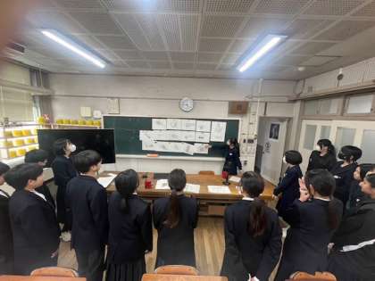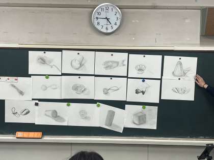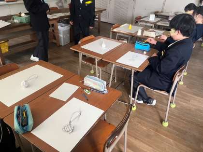 仮入部の時の美術部の様子です。先輩が新入生に指導をしています。とても頼りになる先輩です。