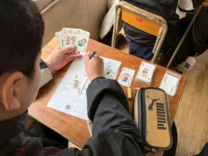 自分で選んだトランプを講師の先生と確認すると、「こんな職業に向いているよ」と紹介していただきました。この後、友達と情報を交換しましたが、職業のことだけでなく、自分のことをより知ることができました。