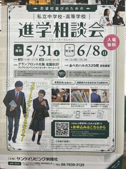 「サンケイリビング新聞社主催 私立中学校、高等学校 進学相談会」が開催されますのでご連絡いたします。参加を希望される方は、QRコードを読み取って事前予約をお願いいたします。