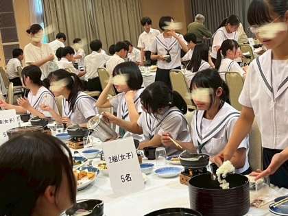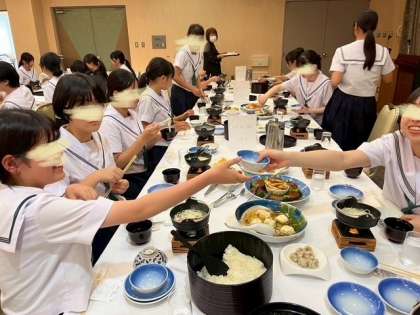 「いただきます!」から、すごい食欲です。ごはんのおかわりをよそったり、みんなで協力しています。しっかり食べましょう。これからがお楽しみの時間です。