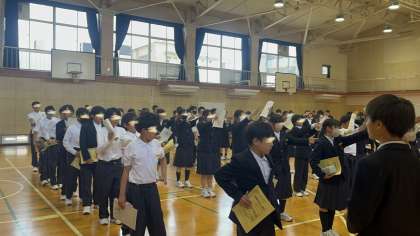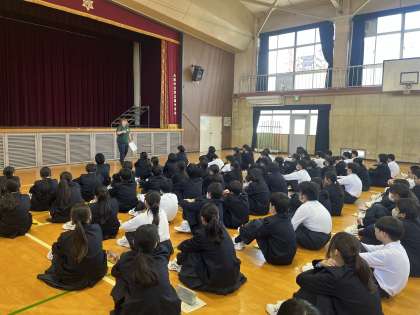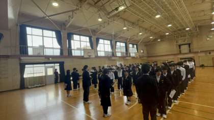 1年生は、一泊移住にむけて整列の練習や係の仕事内容についての確認を行いました。放課後には有志で集まったレクリエーション係の人達も意欲的に活動してくれています。中学生として最初の行事を自分たちの力で一泊移住を成功させましょう!