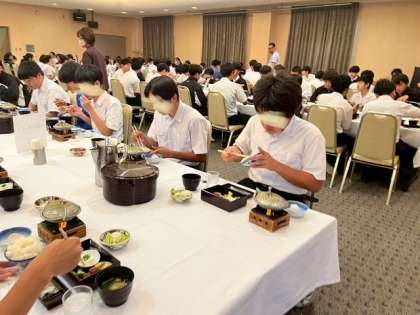 おはようございます。わくわくしていた修学旅行も今日が最終日。楽しい時間はあっという間に過ぎてしまいます。今日は軍艦島クルーズです。今日もしっかり朝ごはんを食べましょう。