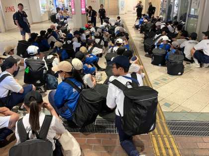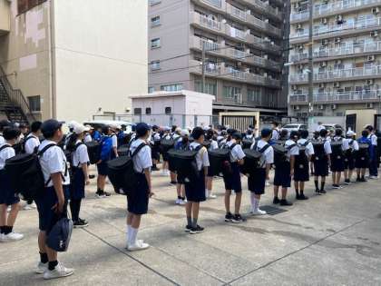 学校を出発しましたが、今千里中央に着きました。これから施設に向かって、45分のウォーキング。