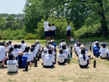 これからはオリエンテーリングの時間です。担当の生徒からお芝居仕立ての説明があり、スタートしました。どんな謎解きやミッションが出るのでしょうか?