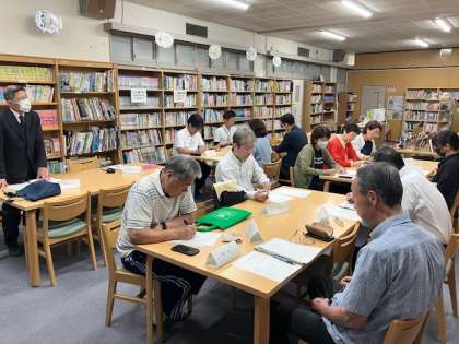 5月19日(月)の18時半より、本校図書館にて令和7年度 第1回の学校協議会を開催しました。学校長の挨拶、教頭より学校の現状の報告がありました。その後、学校長より、今年度の学校運営について説明がありました。