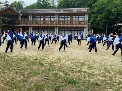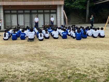 65期生一泊移住二日目です。朝の集いの様子です。体調が悪い生徒はいません。
