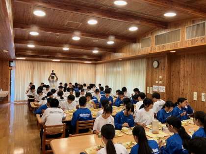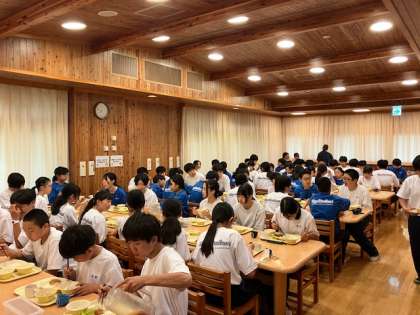 二日目の朝食の様子です。これからの活動に備えて、しっかり食べてます。