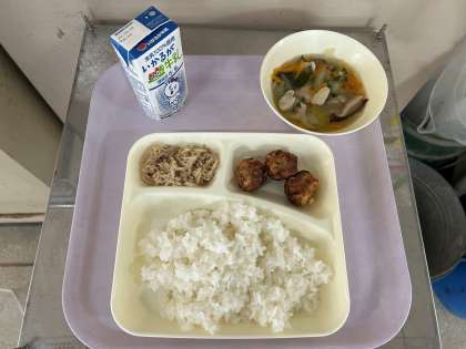 5月20日(火)の給食は、ごはん、牛乳、焼きシューマイ、鶏肉とはるさめのスープ、ツナともやしのいためもの、です。
