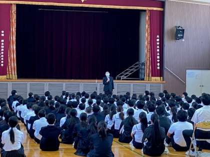 生徒指導主事の先生より:東三国小学校の校長先生から、毎朝、小学校の先生にも挨拶をしてくれる、と褒めていただいている