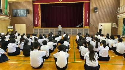 2年生の学年集会の様子です。今日は学年主任の先生から話がありました。