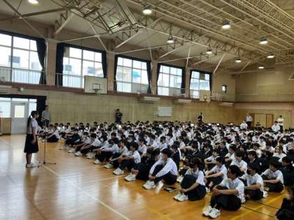 今日の全校集会の様子です。今日も8時25分に始めることができました。集合状態は良かったです。