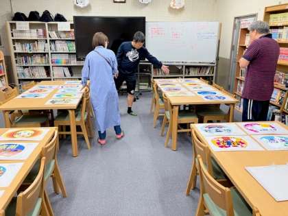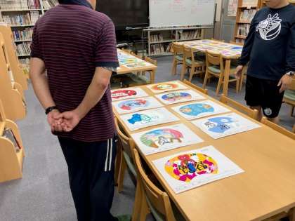 新東三国地域では、本校の3年生が描いたデザインを8月に行われる盆踊り大会で配布するうちわにしてくれています。今日は地域の方がご来校されました。「年々イラストのレベル上がってるなぁ。」と仰ってました。たくさんのイラストの中から6つ選定され、地域の方で相談し、その中から3つ選ばれます。