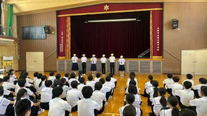 今日は木曜日です。2年生の定例の学年集会が行われました。