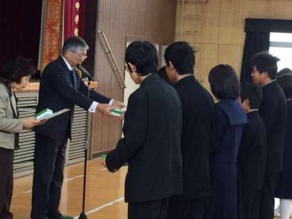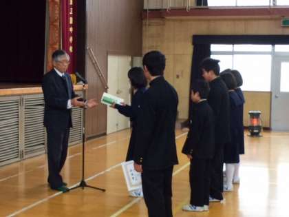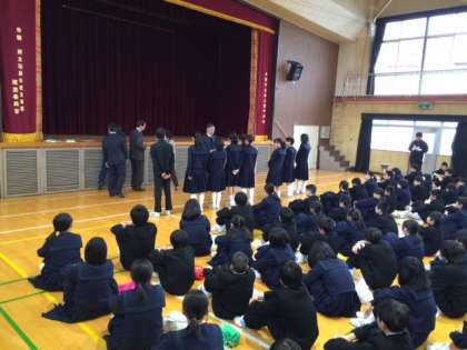 3月14日(月)朝の全校集会のときに、地域の恒例となり