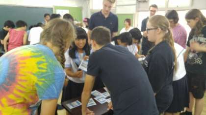 東三国から7人のジュニアリーダーと十三中6人、ハンブルク10人がそれぞれの紹介、昼食、脱出ゲームで楽しんでいます!