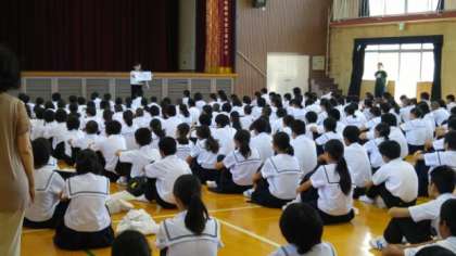 8:40から体育館で始業式を行い、夏休み、どう過ご