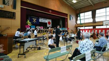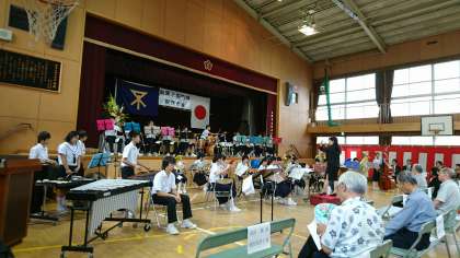 オープニングで中学校吹奏楽部の演奏、小学校教頭先生の