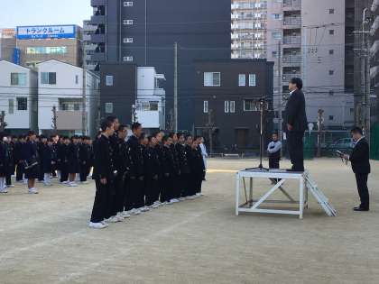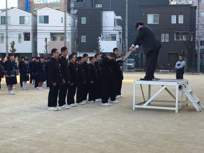 表彰を校長先生から受け、元気で大きな声がグラウンドに