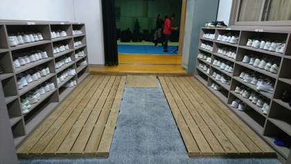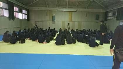 格技室で集合整列ですが、下足箱には生徒全員の靴がきれい