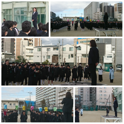 生徒たちは名残惜しく、先生のも割を囲む姿が印象的で
