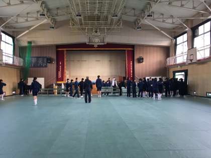 先週の木曜日、体育館の準備を行い、シート張り、長椅子